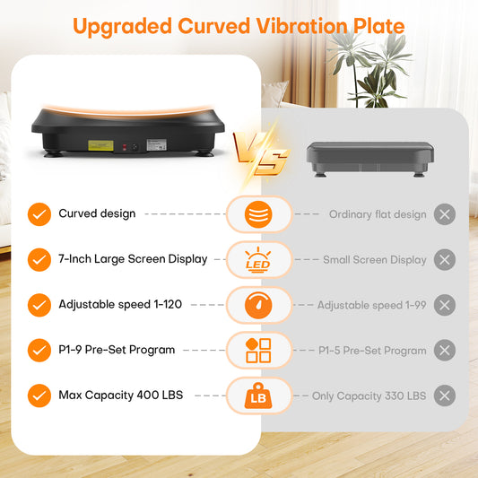 Curved Vibration Plate Exercise Machine, Full Body Vibration Plate for Lymphatic Drainage Weight Loss, 9 Auto Modes and 120 Adjustable Speeds, 400Lbs Capacity Vibration Plate Machine for Home (Black)