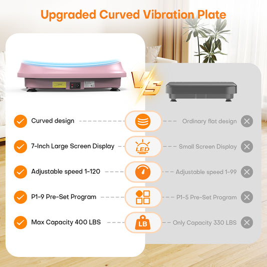 Curved Vibration Plate Exercise Machine, Full Body Vibration Plate for Lymphatic Drainage Weight Loss, 9 Auto Modes and 120 Adjustable Speeds, 400Lbs Capacity Vibration Plate Machine for Home (Pink)